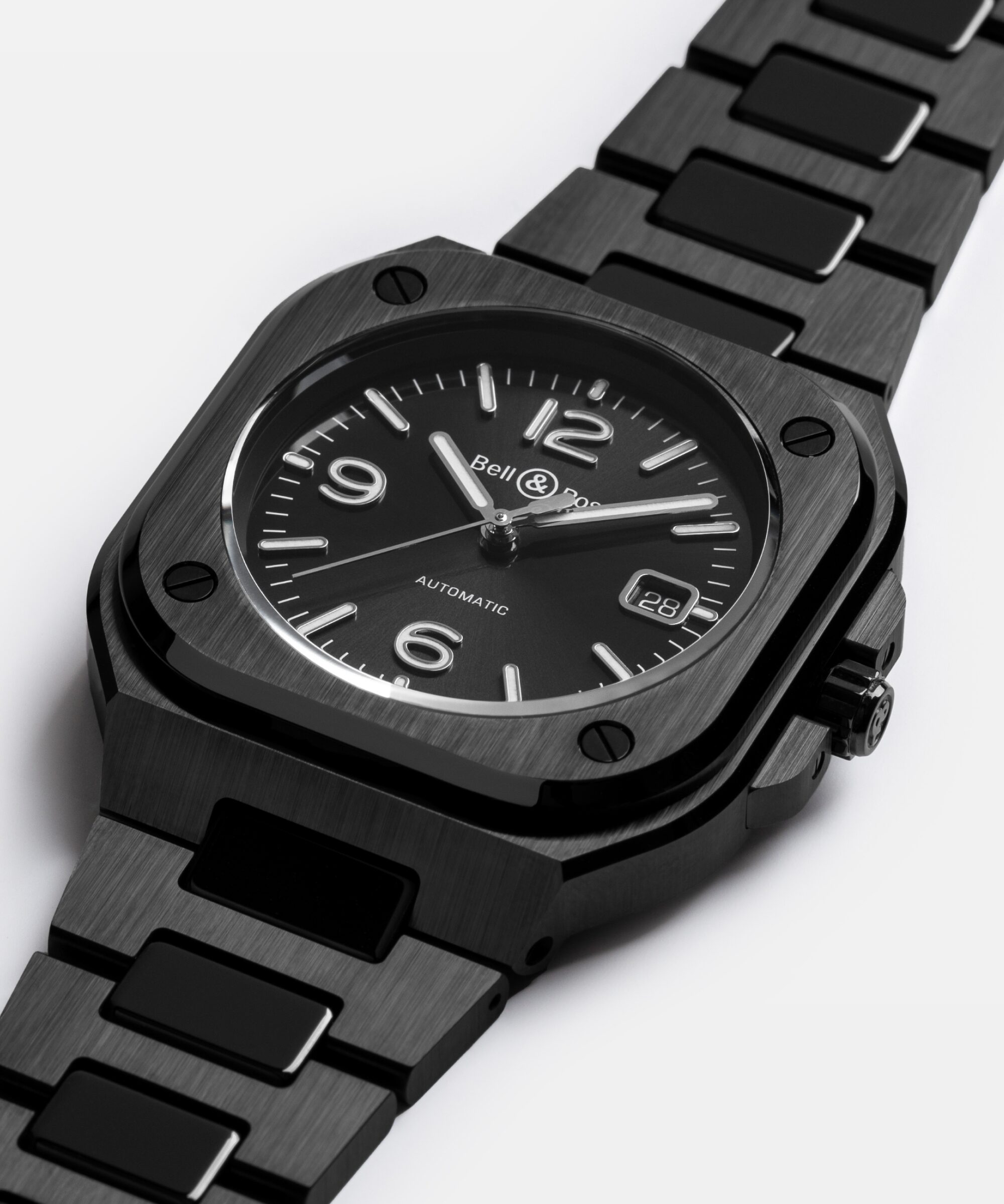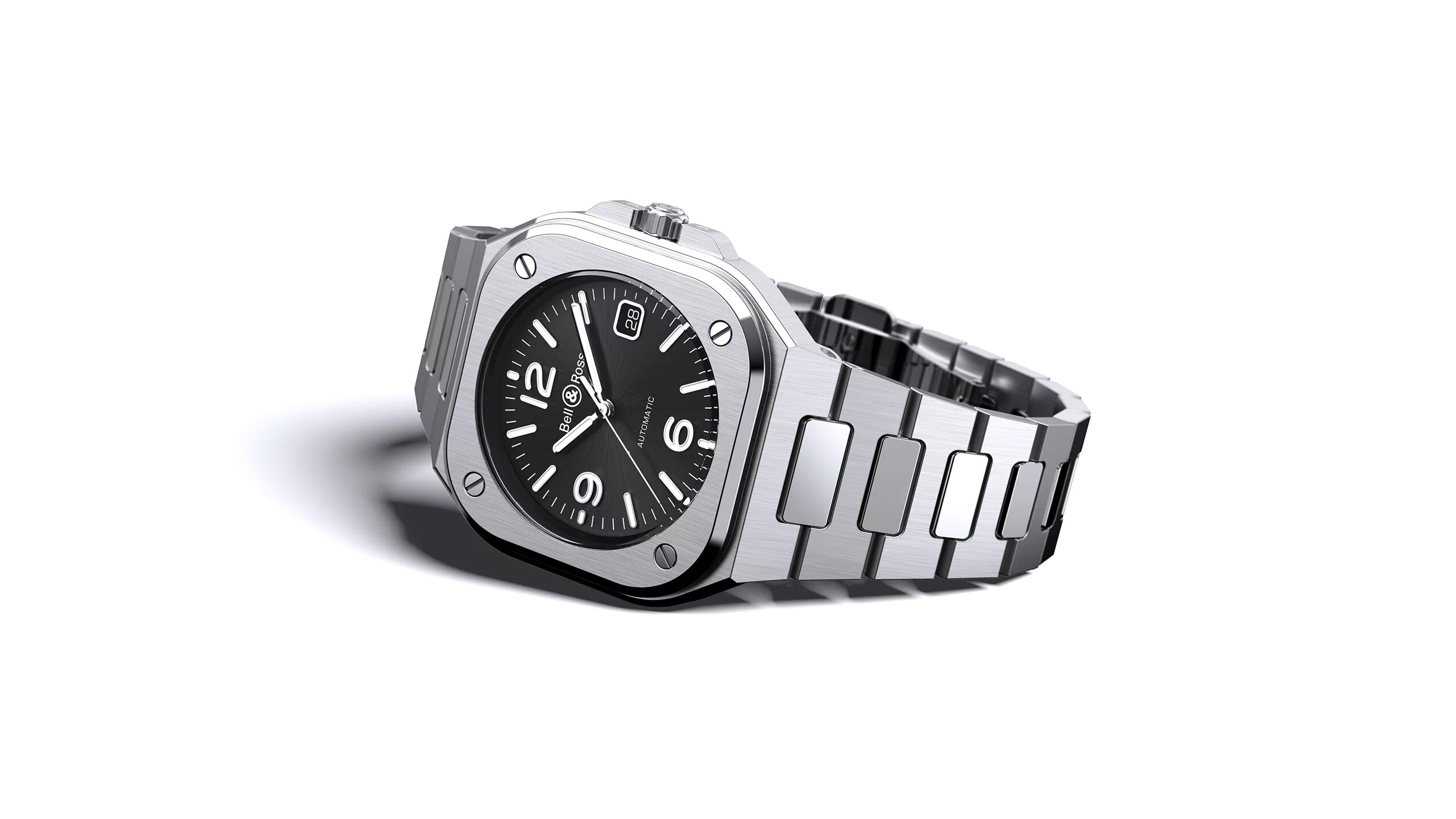 ベル アンドロスの中でも、近年とくに注目されているのが「BR05」シリーズです。このシリーズは、従来のスクエア型ケースを基盤にしつつも、より都会的で洗練されたスタイルに昇華されており、ブランドの新たなフラッグシップラインとして位置づけられています。デザイン的には、ラグとケースが一体化した構造で、ブレスレットのラインが滑らかにつながることで、着け心地と高級感が両立されています。