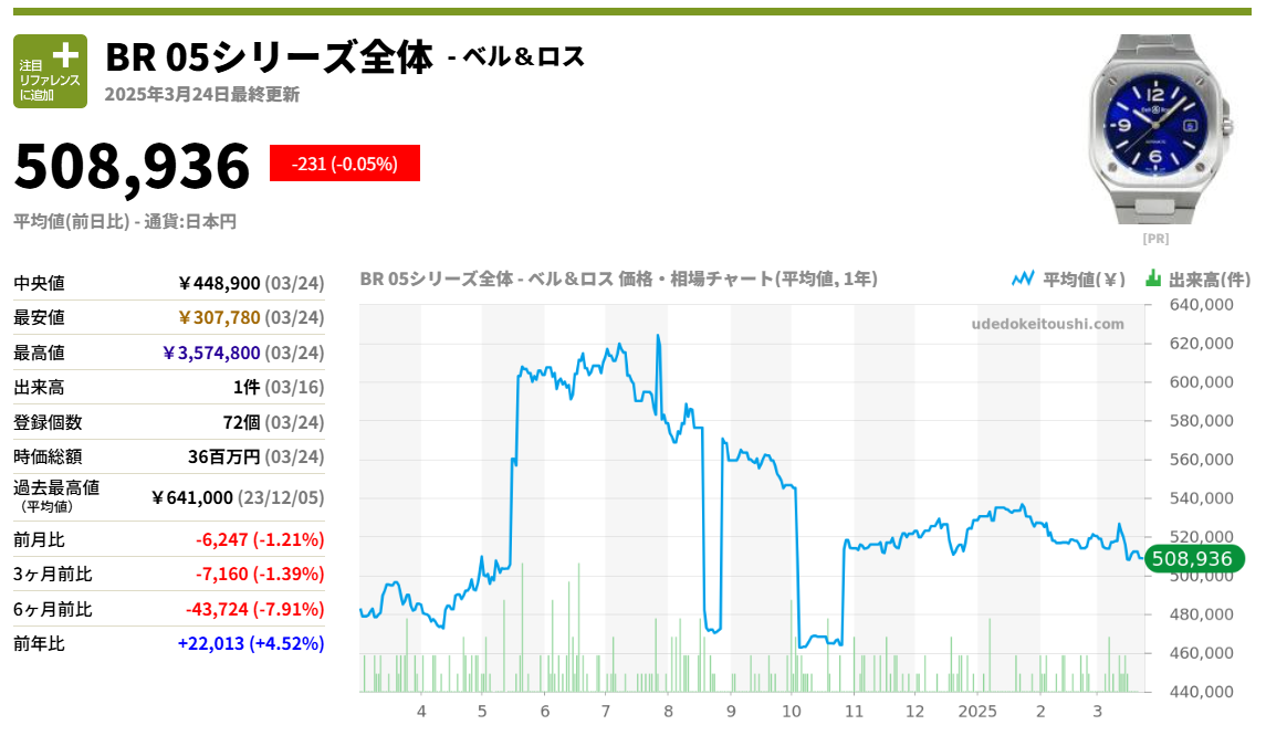 また、BR05シリーズはブランドの成長戦略の一環として積極的にプロモーションが行われており、広告・ファッション業界での露出も増えています。これにより、ファッションアイテムとしての人気も高まり、再販時に「需要が読みやすい」モデルとなっているのも特徴です。これは資産価値の維持という観点では大きなアドバンテージです。