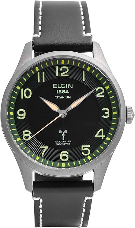エルジンが日常使いと快適性を追求して生み出した逸品。軽量で肌に優しいチタン素材、視認性に優れたグリーン文字盤、電波ソーラーの高機能、洗練されたスポーティーデザインが魅力。