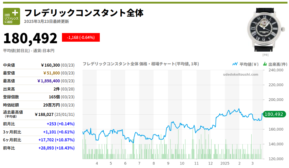 まず、多くの高級時計ブランドにおいて、資産価値というのは「再販時の価格」や「年月を経ても価値が落ちにくい」という点で語られることが一般的です。たとえば、ロレックスやパテック・フィリップなどの一部モデルは、中古市場でも高値で取引され、時には購入時よりも価値が上がることさえあります。しかしフレデリック コンスタントは、このような「投資対象」としての立ち位置ではありません。