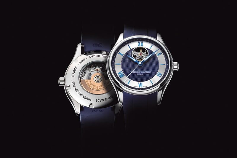 フレデリック コンスタントを語るうえで外せない存在が、自社開発のムーブメント「ハートビート」です。このモデルは、文字盤の一部から内部のテンプの動きを見せる独特のデザインを持ち、単なる装飾ではなく、ブランドの技術力と理念を象徴する存在として知られています。