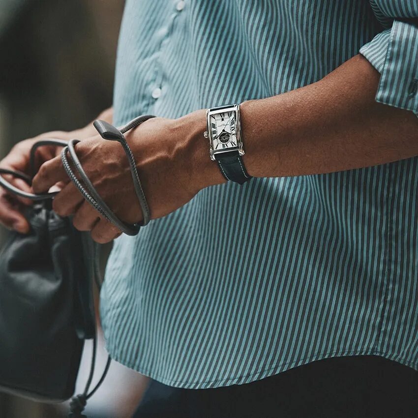 まず、デザインについて。フレデリック コンスタントの多くのモデルはクラシックなスタイルを基調としており、流行に左右されにくい普遍的な美しさを備えています。こうしたスタイルは、5年後、10年後に見ても古びた印象を与えません。日常のスーツスタイルはもちろん、カジュアルな服装とも自然に馴染むため、TPOを選ばずに活躍します。