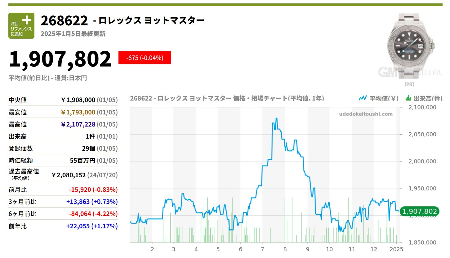 ヨットマスター ボーイズサイズ(37mm)の定価と市場価格は、購入を検討する上で重要な情報です。ロレックス公式サイトでは、最新モデルの定価が公開されており、37mmモデルの定価は約150万円から200万円の範囲内に設定されています。ただし、モデルの素材や仕様によって価格は変動します。